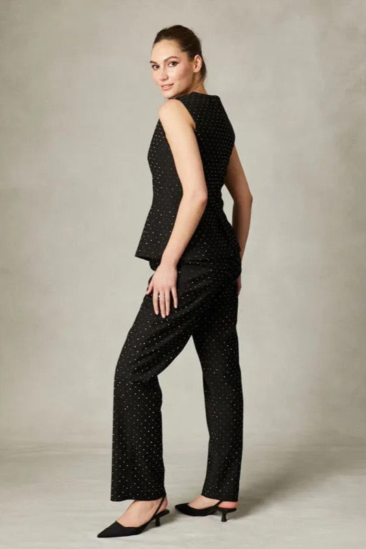 Tailored trousers with silver hot fix embellishments throughout for a subtle shimmer. Finished with a fly front and side pockets, they blend timeless tailoring with a fresh, modern edge.