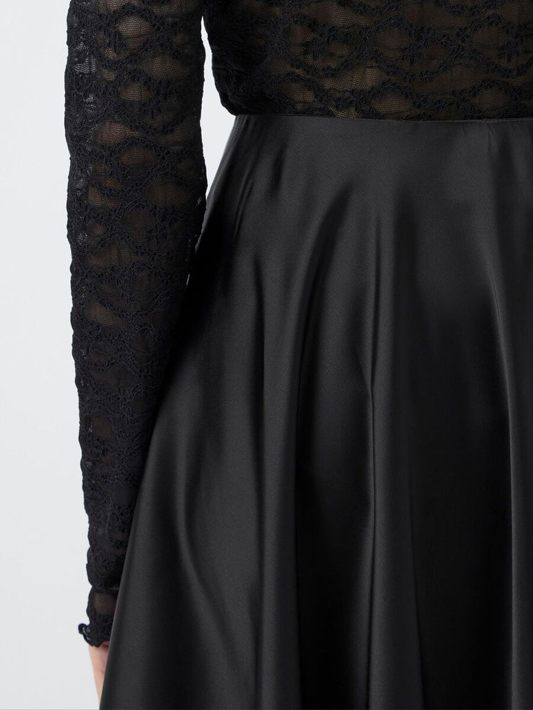 Add a touch of femininity to your look with a beautiful skirt. It is the perfect companion for your favourite top or shirt and is easy to style with knits and outerwear. This style is made from a polyester satin fabric, a heavy and upgraded fabric with a silky surface and a beautiful drape.