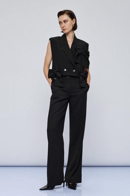 Leopard semi-sheer blouse with long puff sleeves. It features a front V-opening with a tie neckline. It is an ideal choice for elegant and stylish looks.