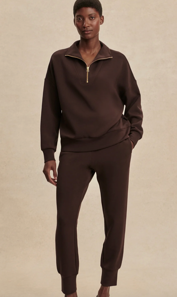 Varley Hawley Half Zip Sweat in Brown